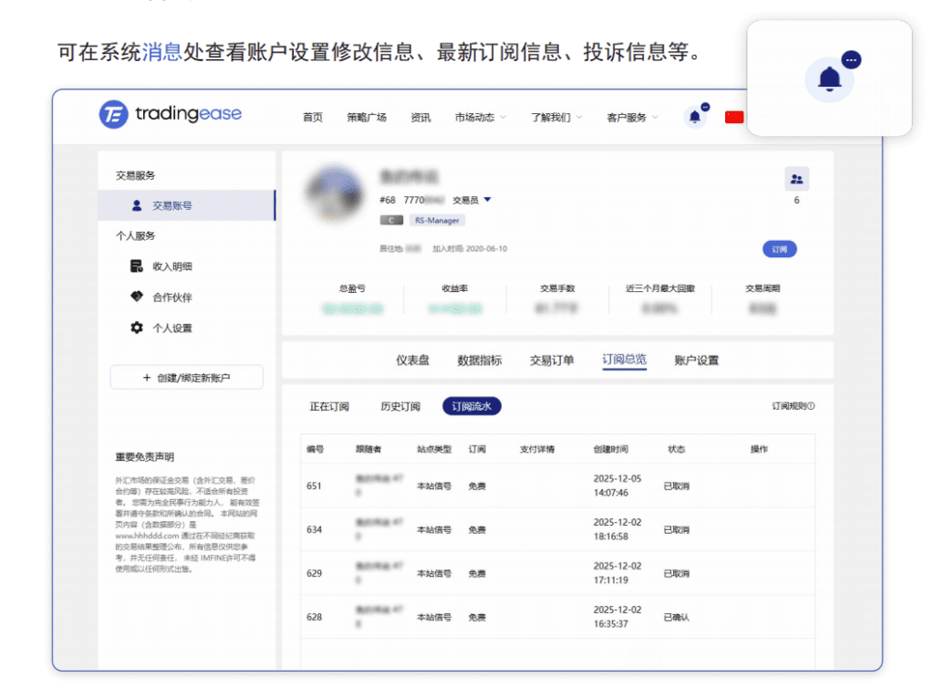 此时用户可自由浏览策略广场、资讯、市场动态等内容,但若想进行订阅操作,则需要登录用户账号,若无账号,可免费进行注册。
