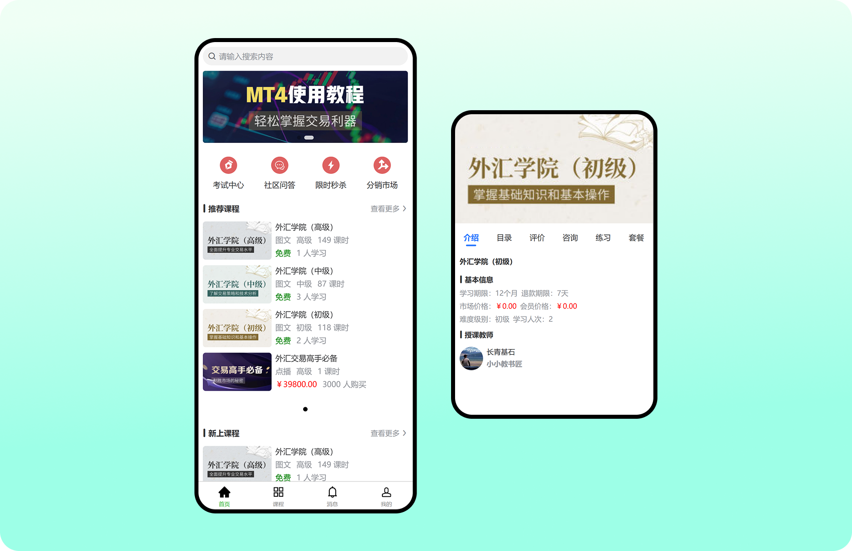专人培训与案例讲解,无论您是想做线上培训,还是线下训练营,借助我们的 产品和服务都可以快速构建的属于您自己的交易培训服务体系