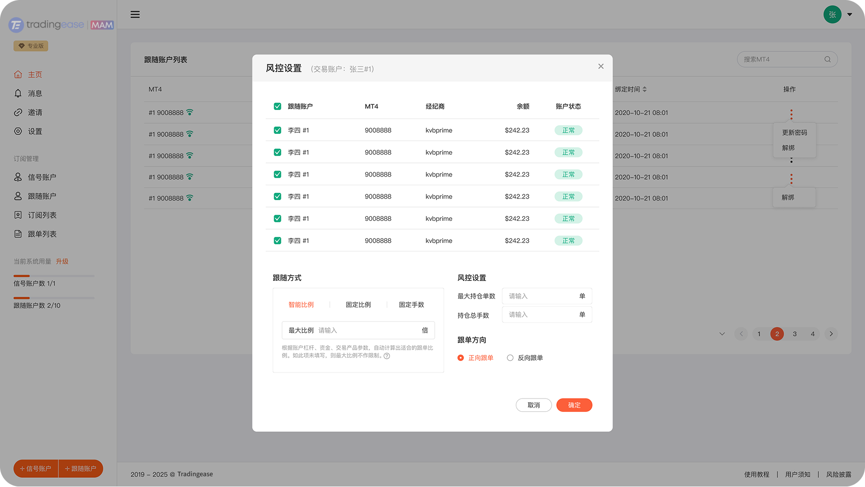 跟单社区:代理商可直接将客户接入跟单社区,通过实时信号或自动化跟单,提高客户获利体验。