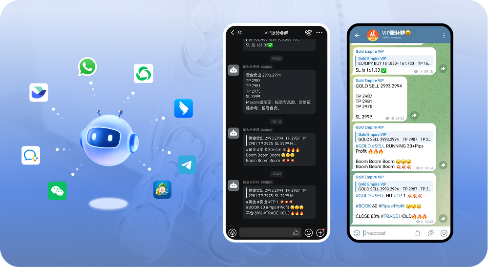 帮助代理商快速创建专属机器人和服务群,为客户提供即时策略提醒。